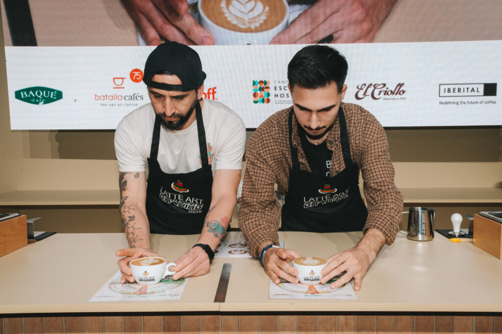 Paralelamente, el Latte Art ha evolucionado hacia formatos de mayor exigencia técnica, donde se valora la precisión, la simetría, el contraste y la limpieza del vertido. Un ejemplo reciente ha sido la participación de Fórum Café en Alimentaria & Hostelco, donde se celebraron competiciones de Latte Art en colaboración con LAGS Spain (Latte Art Grading System), un sistema internacional que estandariza la evaluación por niveles de dificultad y ejecución técnica.